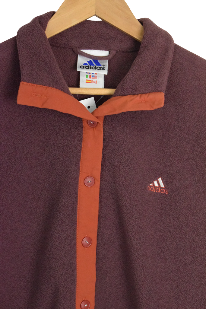 Vintage Adidas Burgundy Fleece Button-Up Sweatshirt (M)