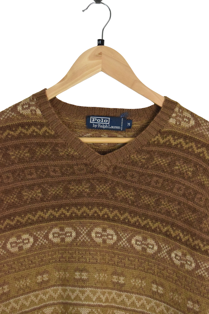 Vintage Wool Brown Polo Knitted Sweatshirt (M)